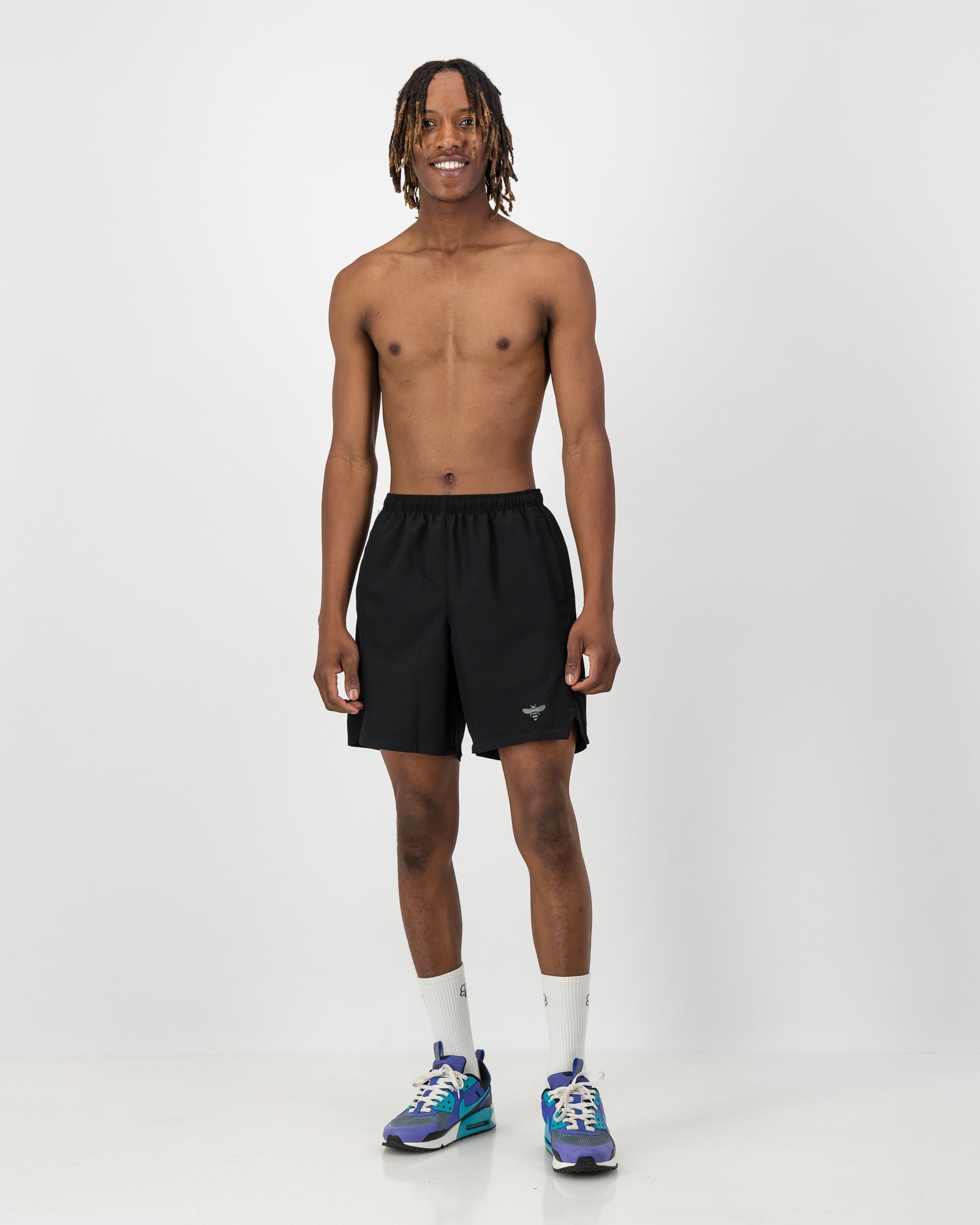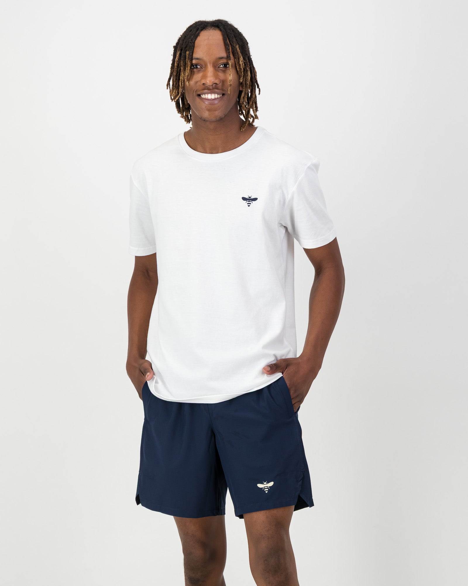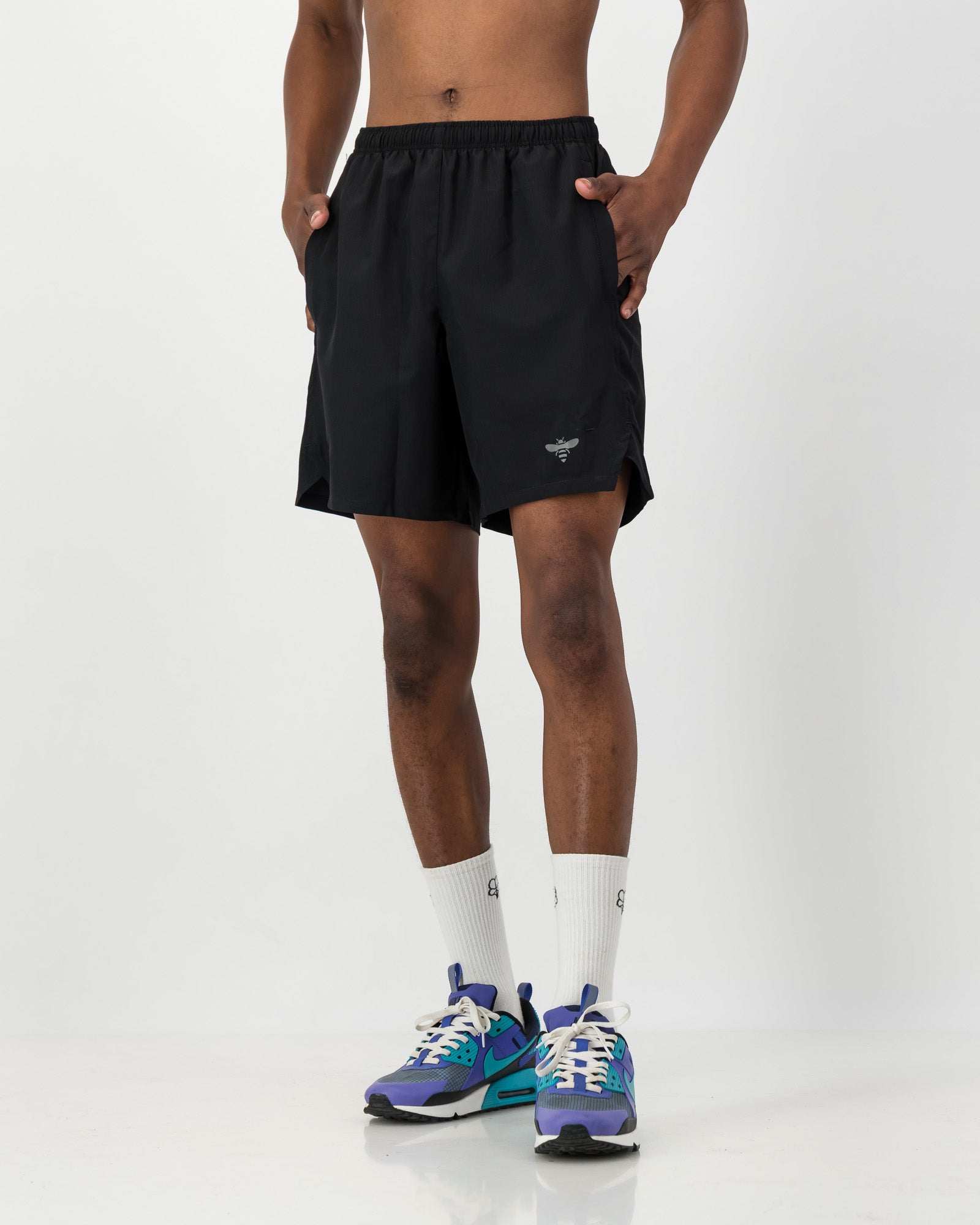 These simple yet stylish active shorts can be used for all sports, training, gym sessions or running. They are a relaxed and comfortable fit with side pockets. Our Icon Bee is printed on the left leg panel in the bottom corner.