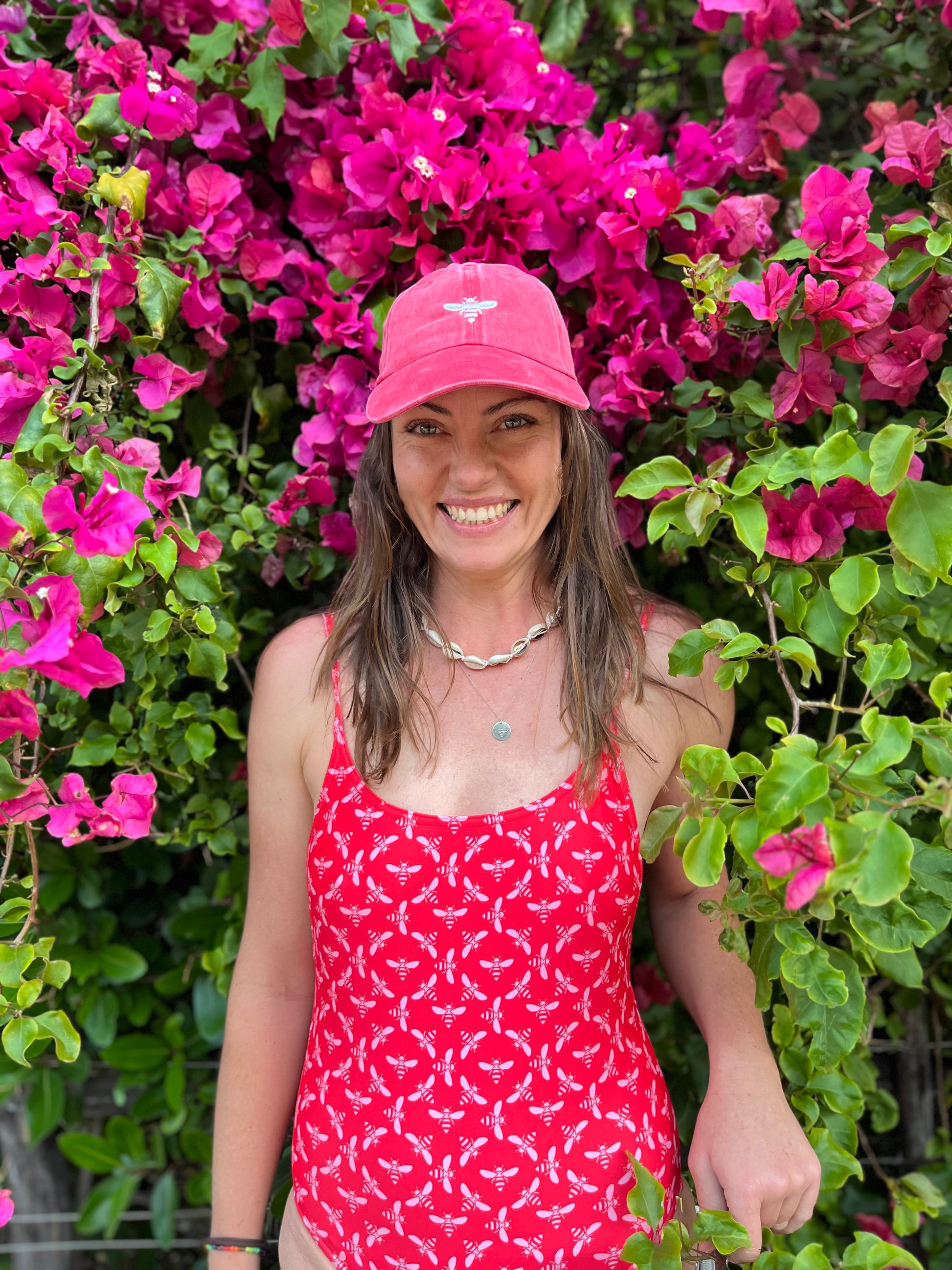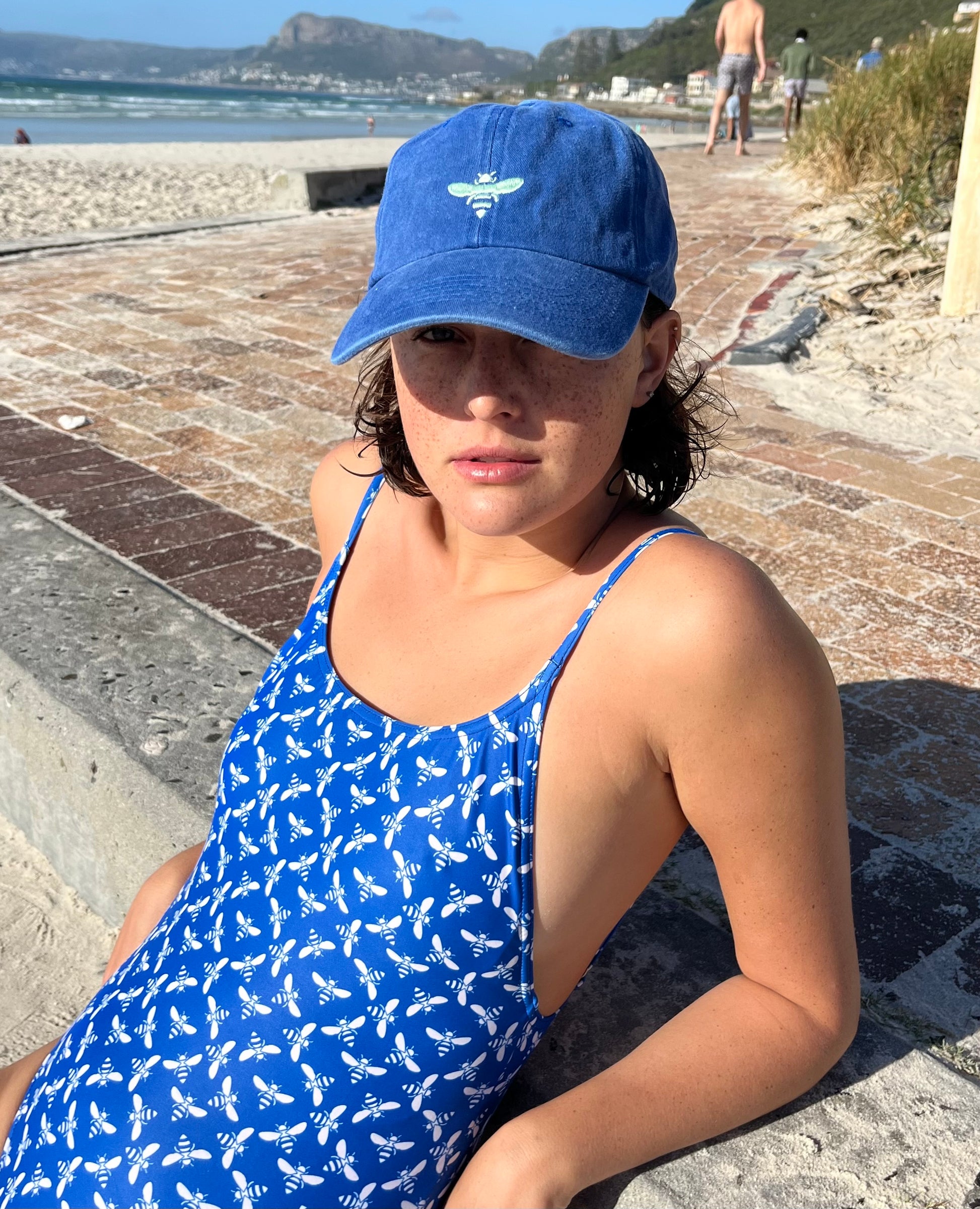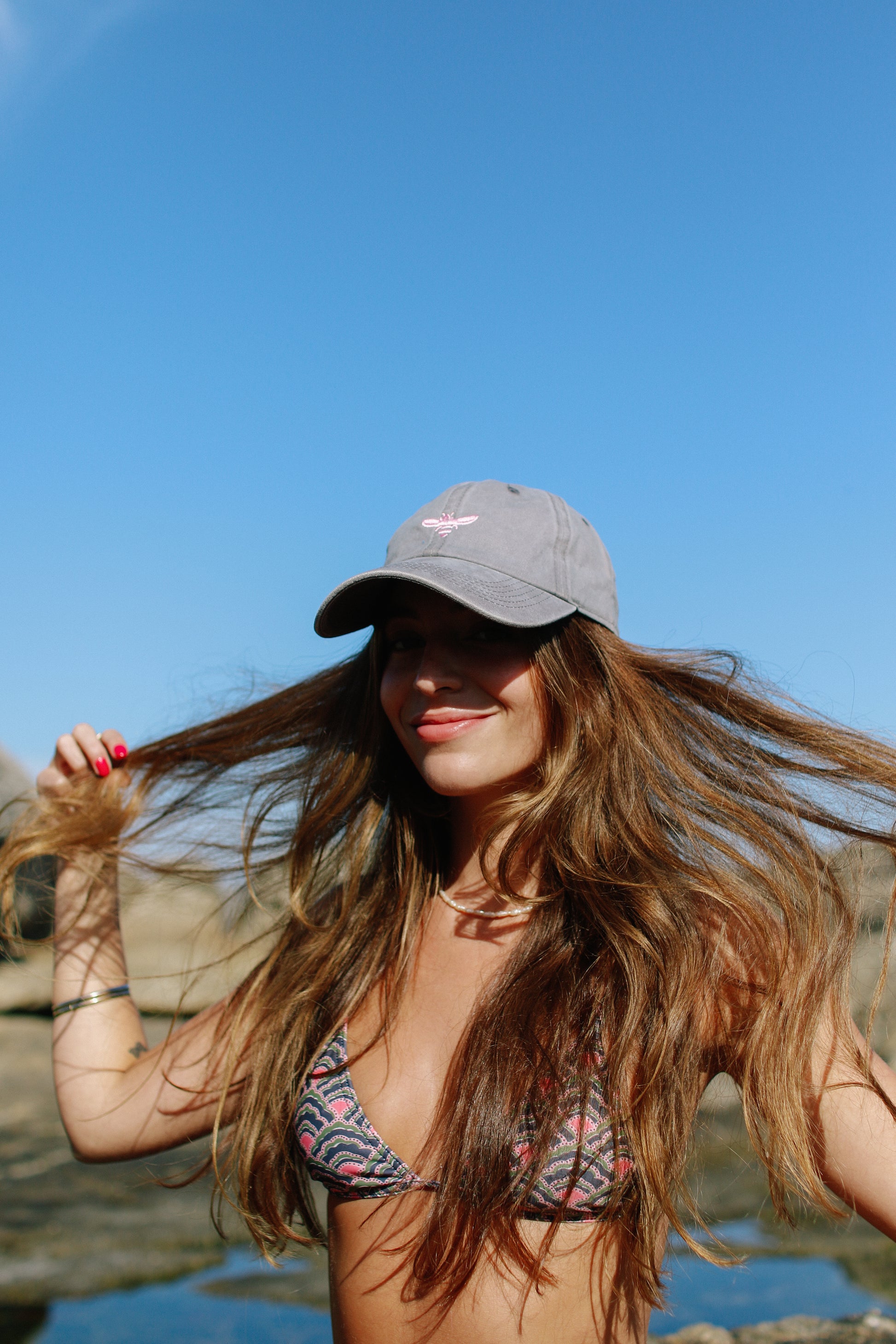 Our washed cotton twill caps are locally embroidered with our iconic bee logo.