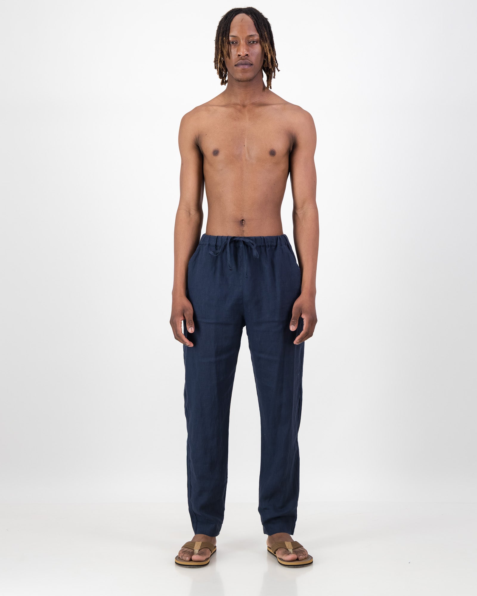 Relaxed easy to wear unisex linen pants with side pockets, back pockets and a waist draw cord for ease and comfort, made in the finest quality linen.