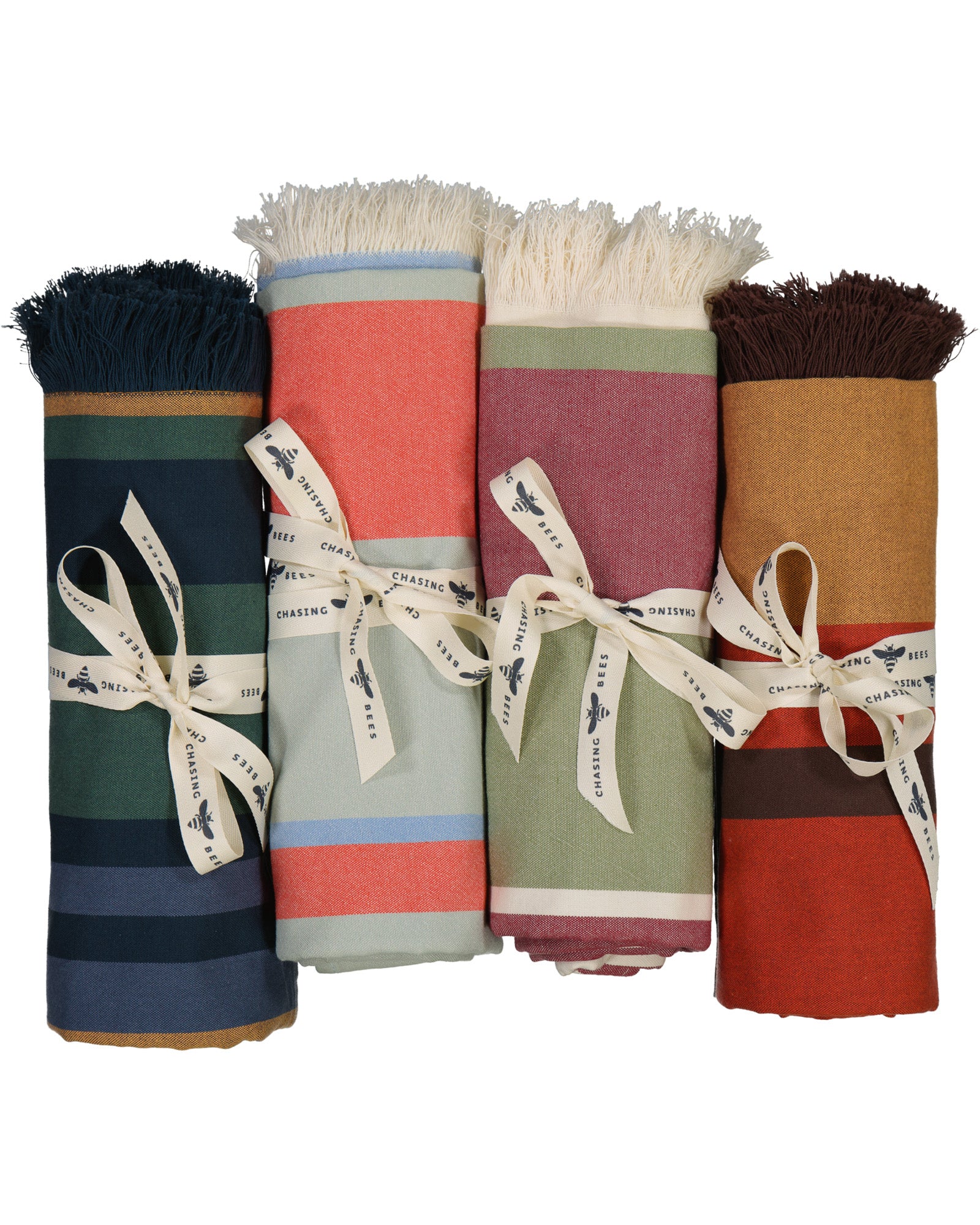 Our new Kikoi's are woven by local artisans using 100% natural cotton and traditional techniques. Soft, durable, and beautifully made, it's perfect as a wrap, scarf, beach throw, or home accent.