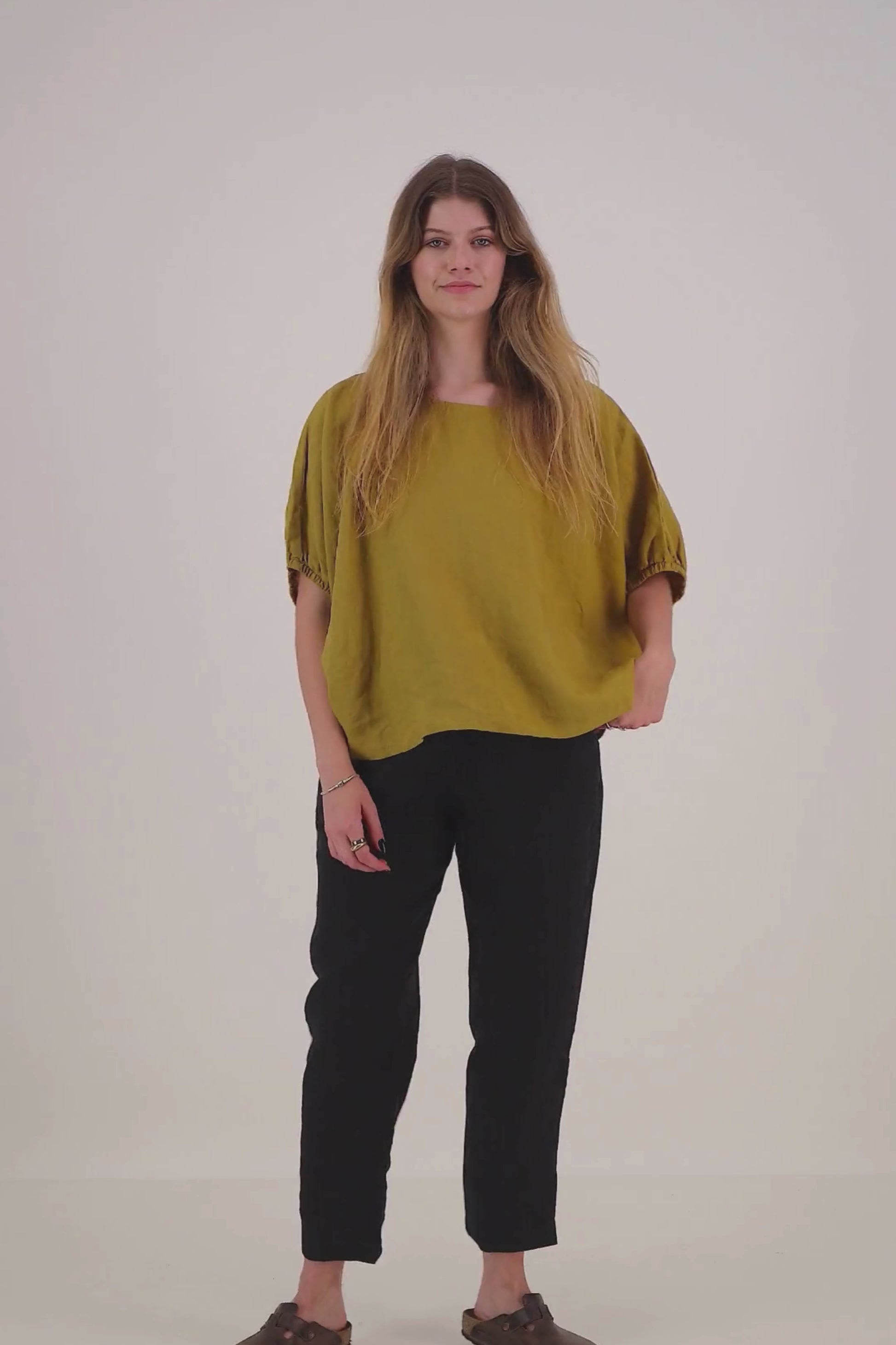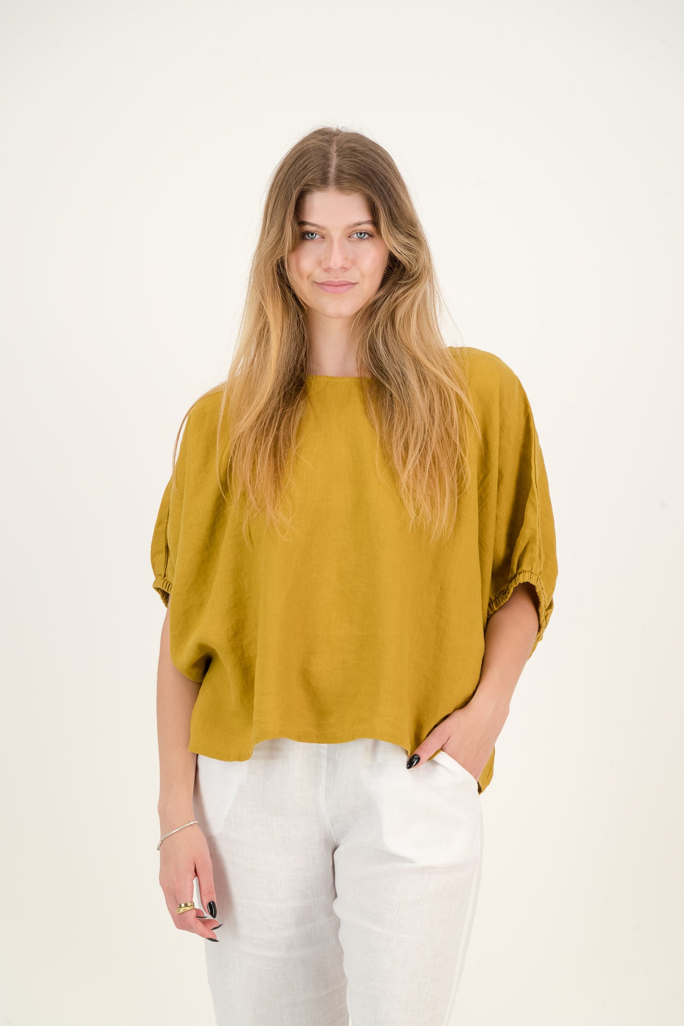 This oversized loose fitting top with elastic sleeves, can be worn with our linen unipants or paired with a great pair of denims. It is a free size and can be left loose or tucked into the bottom of your choice.