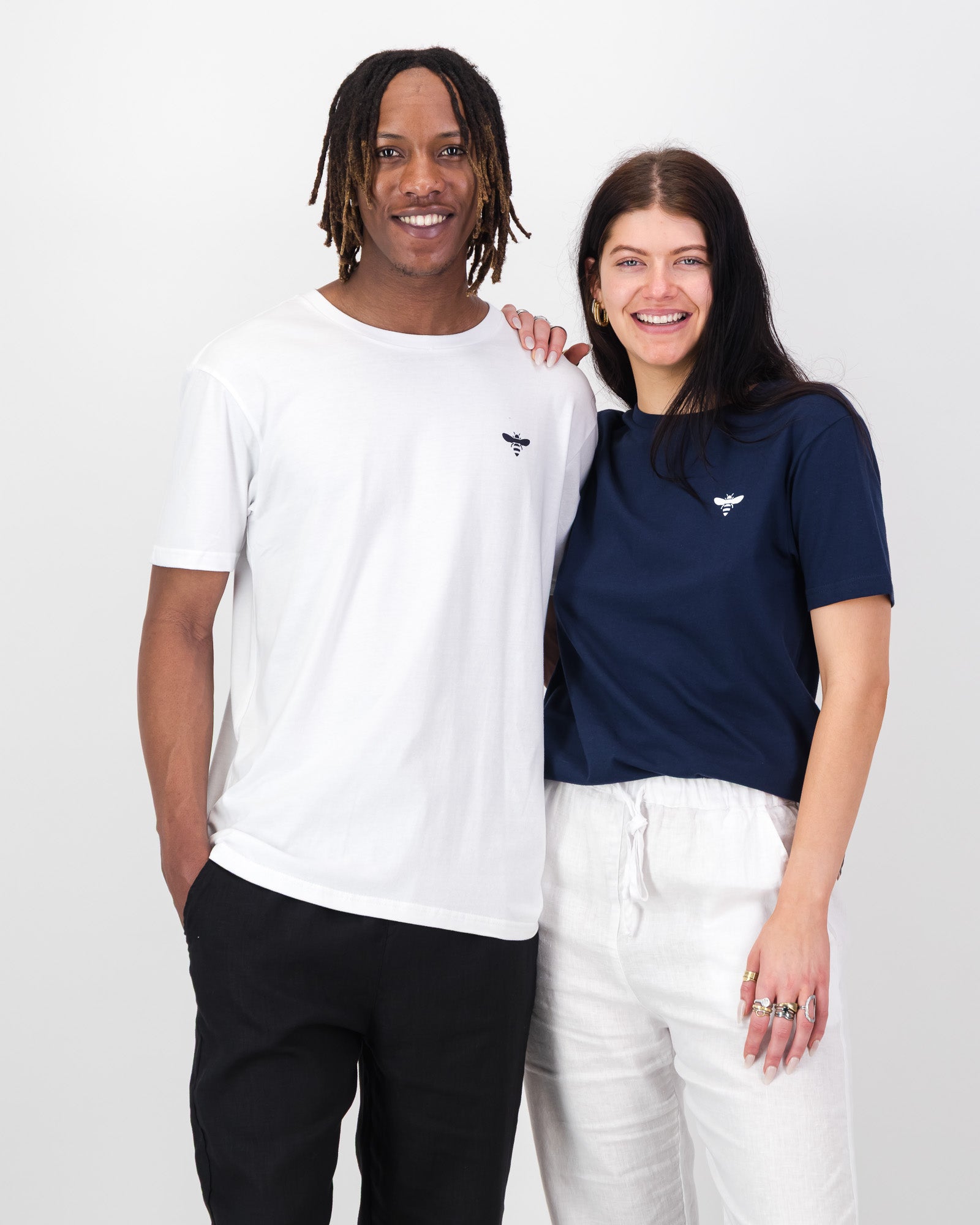 Classic regular fit unisex T-shirt using luxury 160gsm Combed Cotton. Iconic bee is locally screen printed onto the left chest placement.