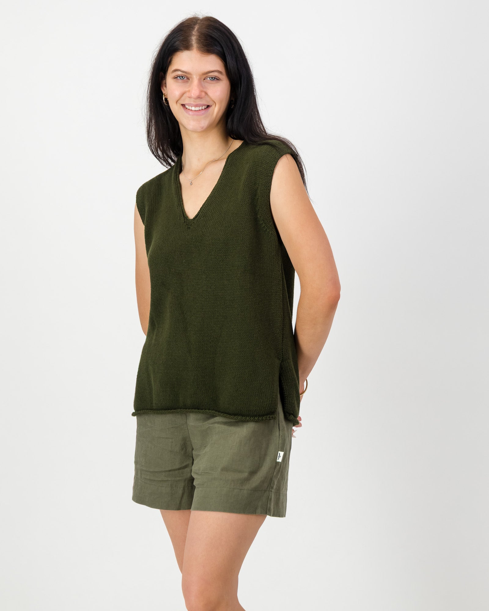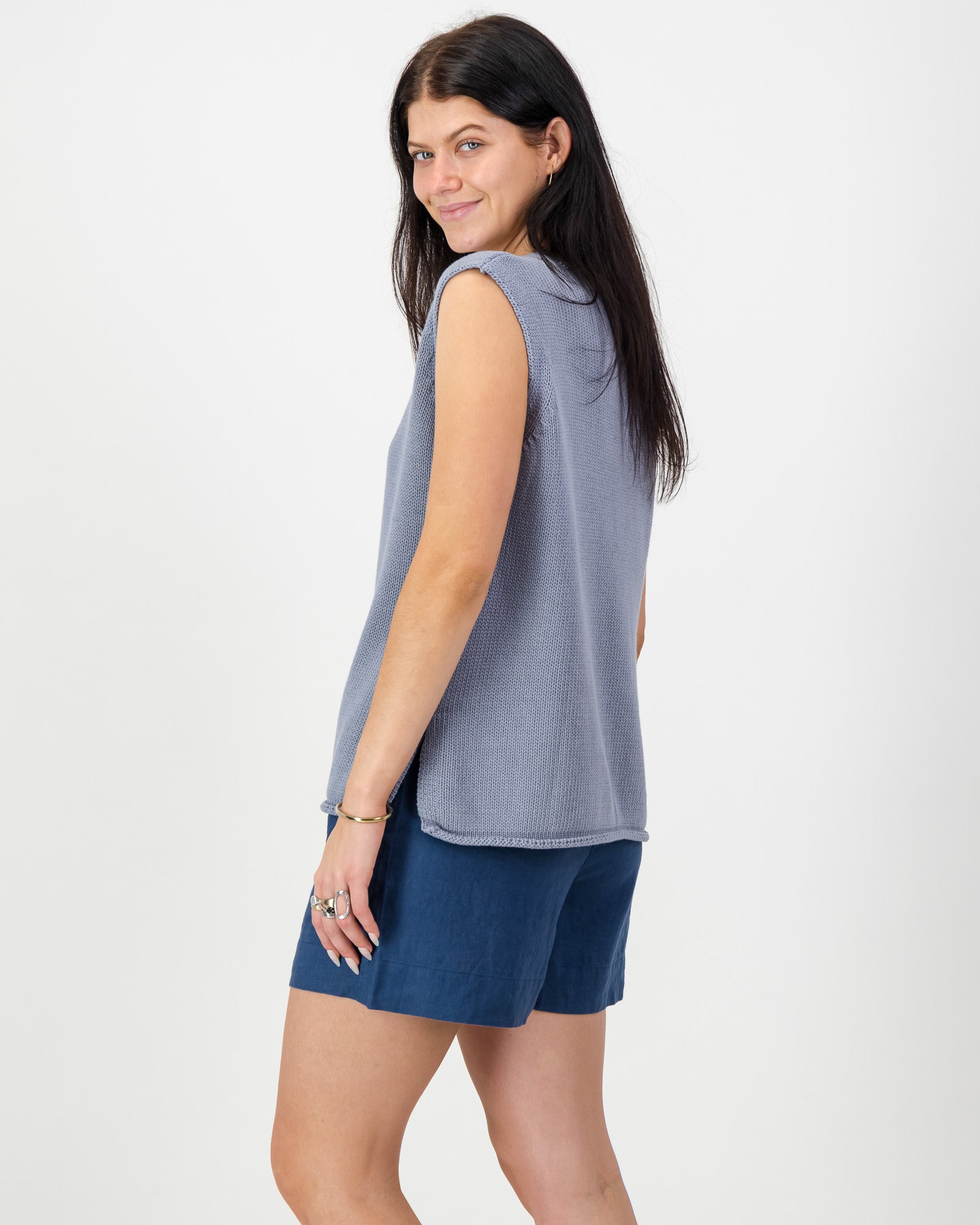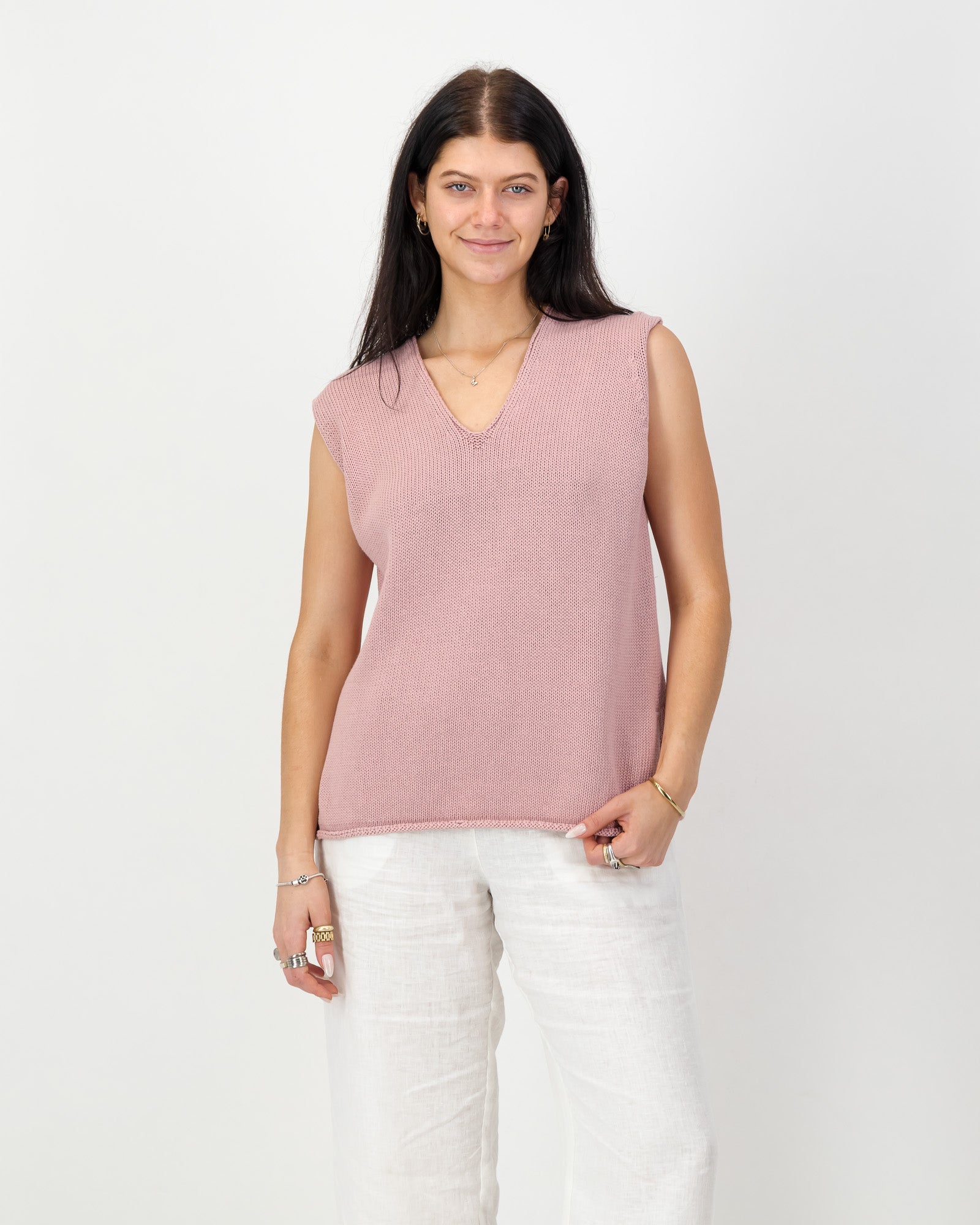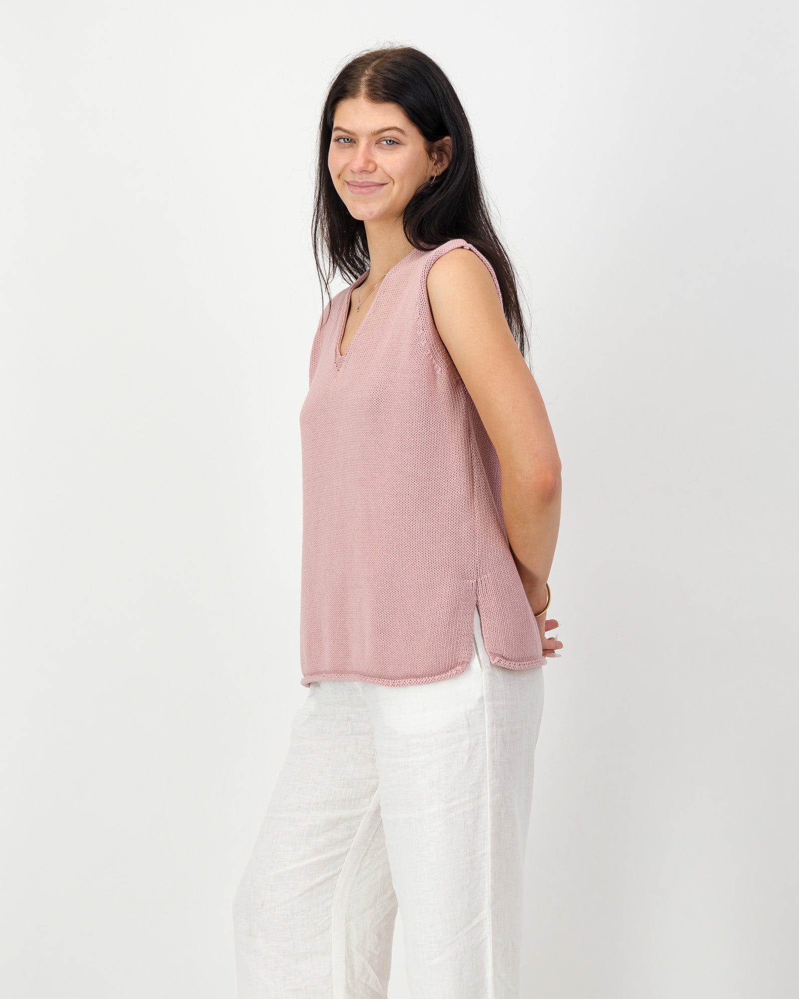 Relaxed cotton knit top with side seam slit, can be worn separately or styled as a layer over a shirt or T-Shirt