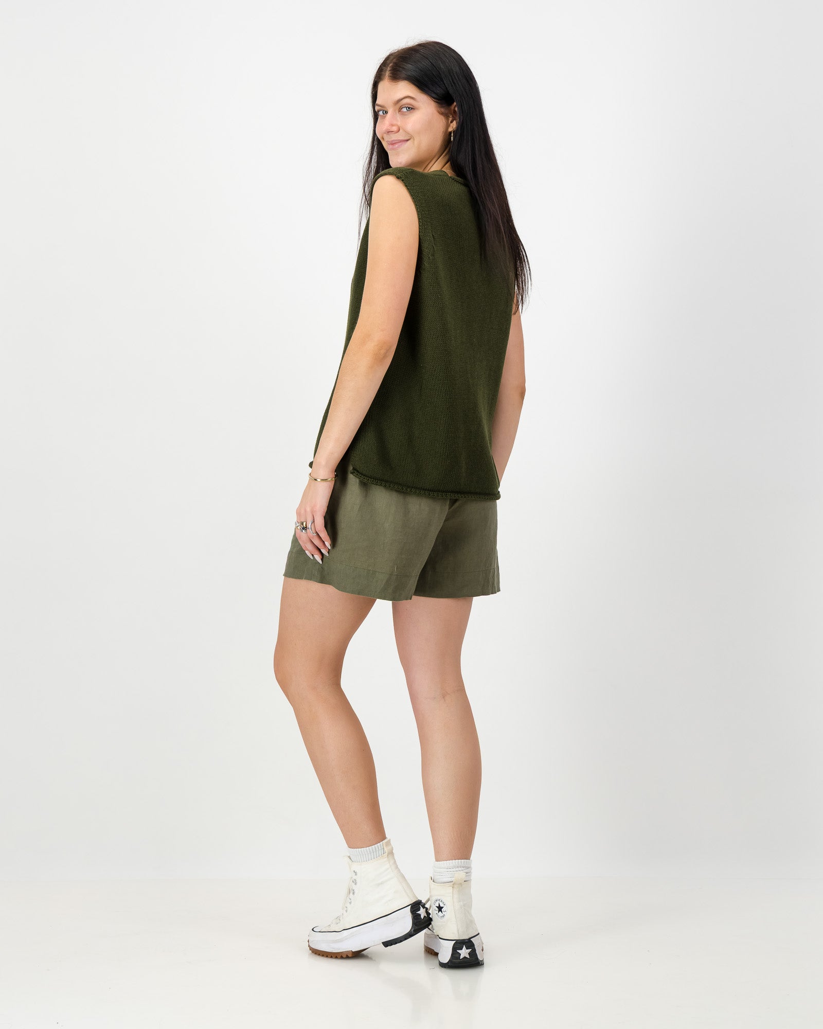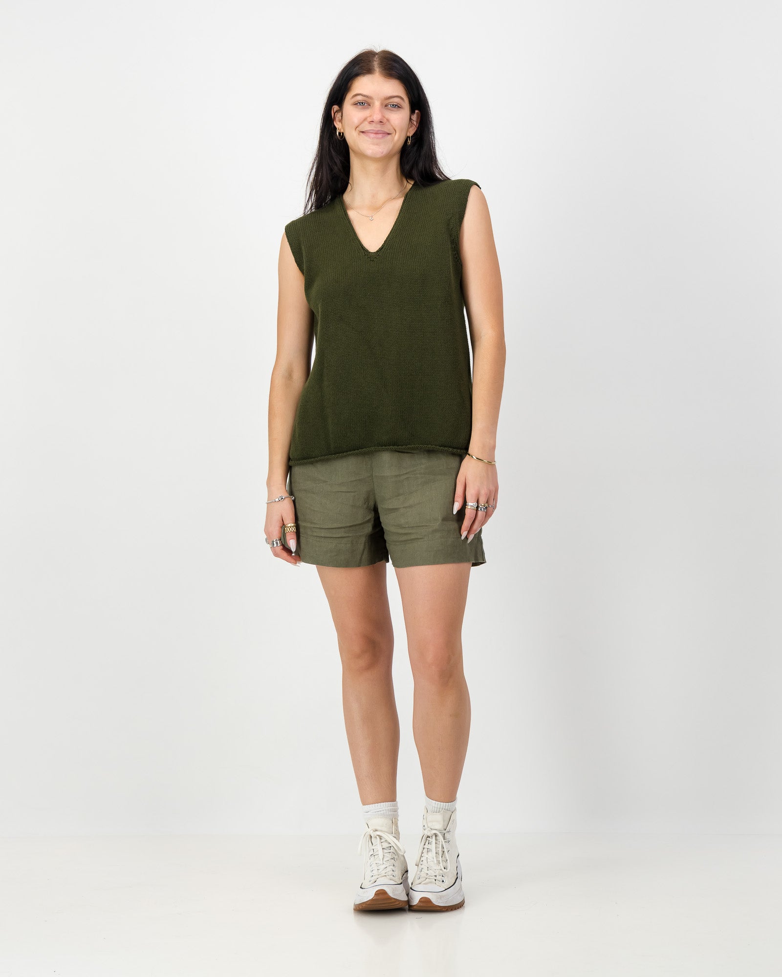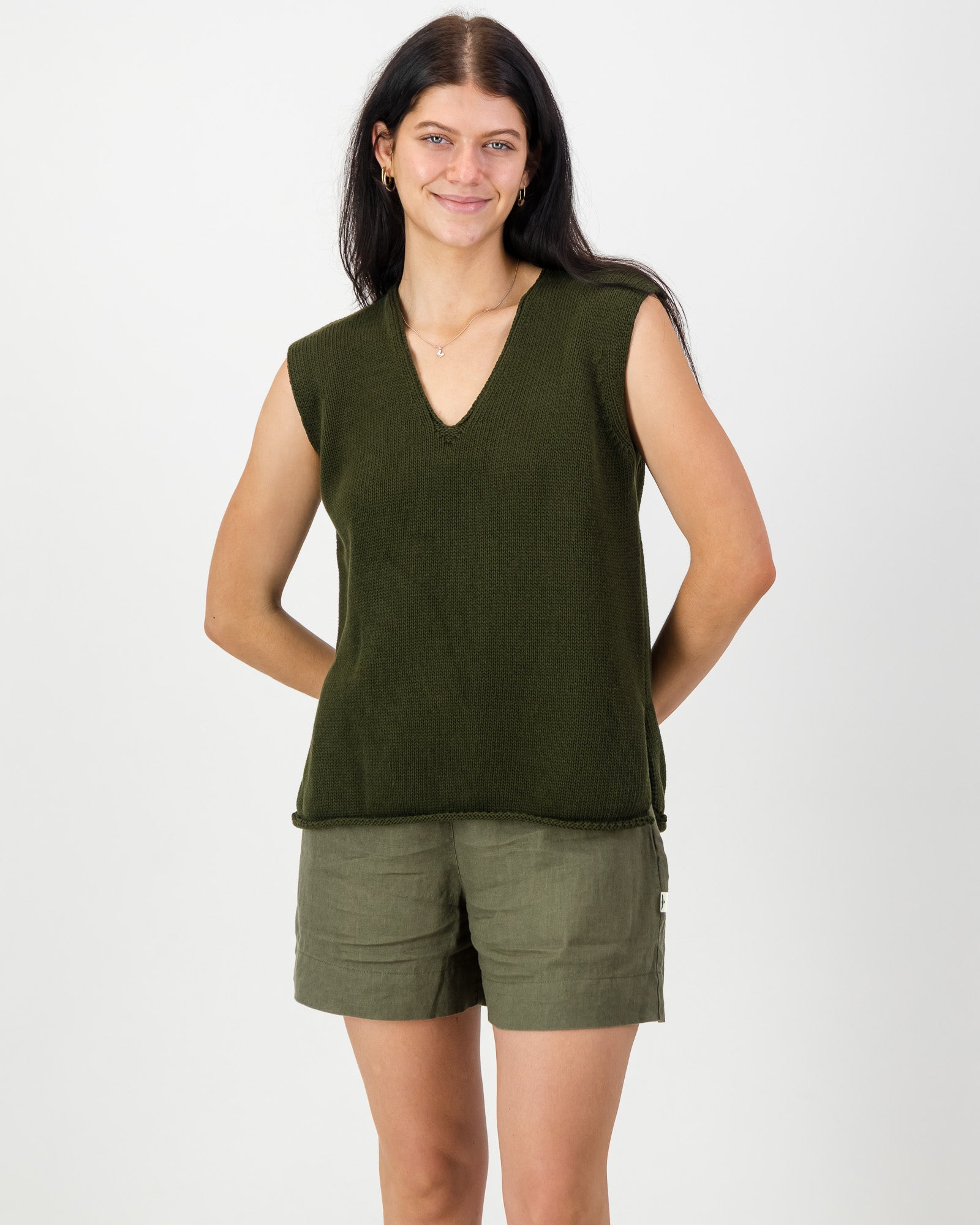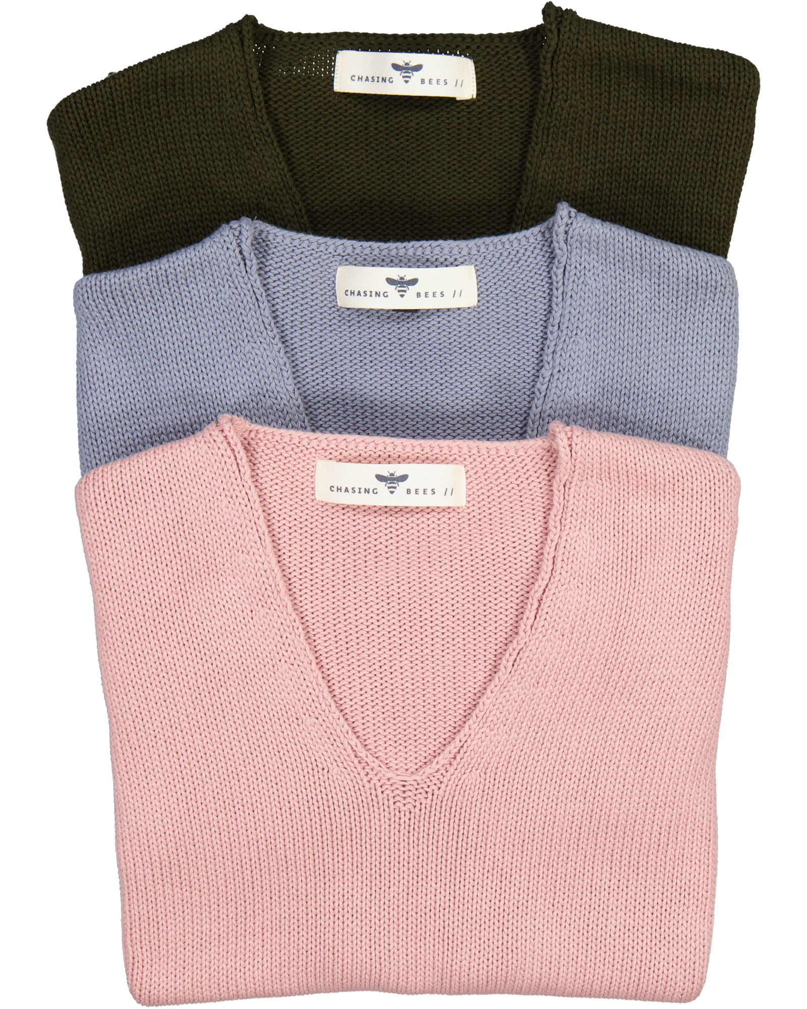 Relaxed cotton knit top with side seam slit, can be worn separately or styled as a layer over a shirt or T-Shirt